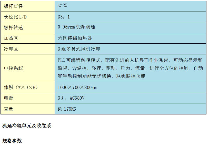 本機主要由主驅動(dòng)電機、傳動(dòng)裝置、擠出裝置、加料斗、電控系統、流延模頭、兩輥壓延等組成.